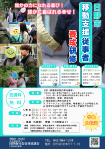研修修了後は、日野市内の事業者と契約し、知的障害児(者)のお出掛け(遊びや散歩etc)の支援(サポート)